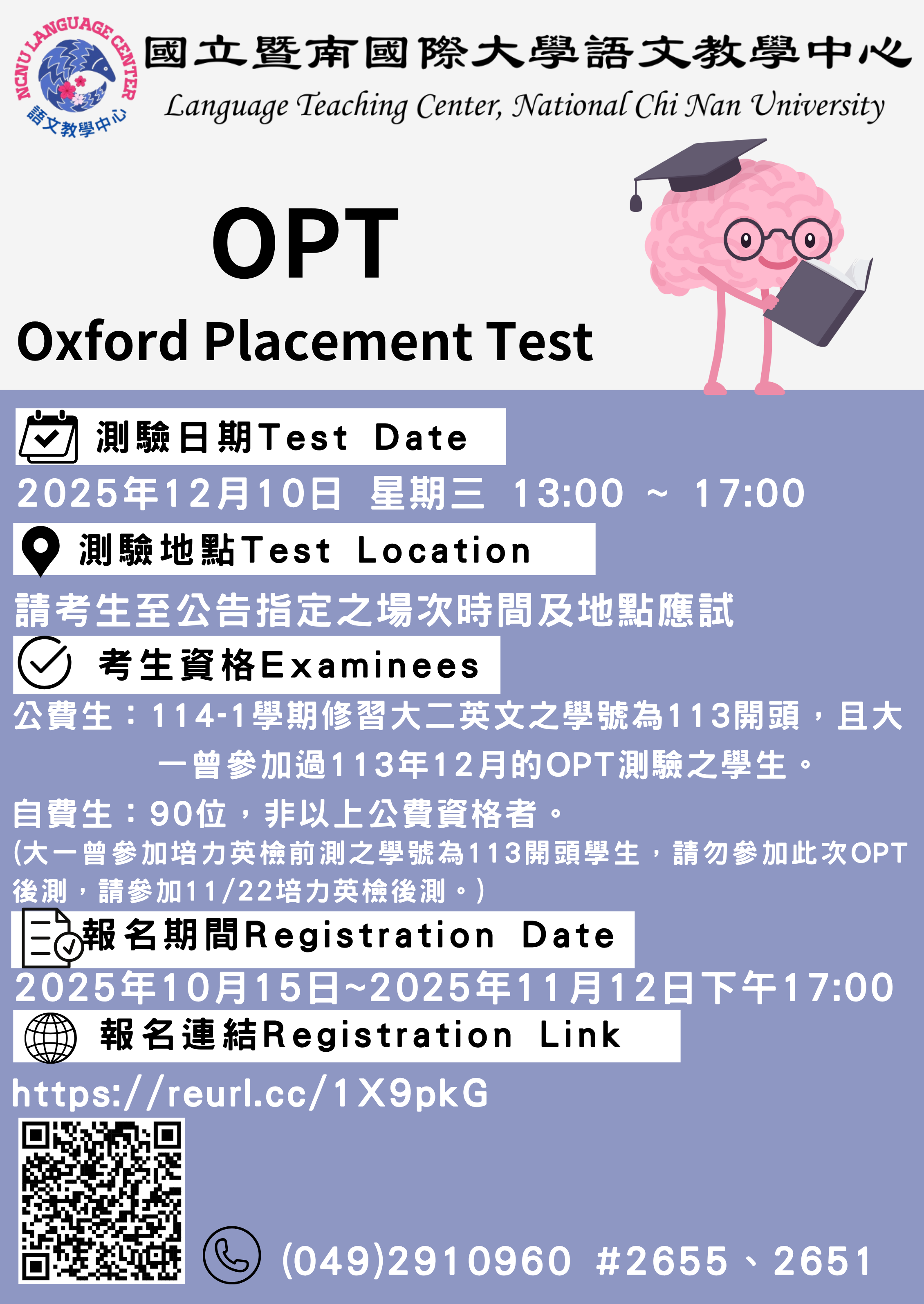 【考試相關】校內英檢OPT測驗報名與繳費資訊(場次:114年12月10日)