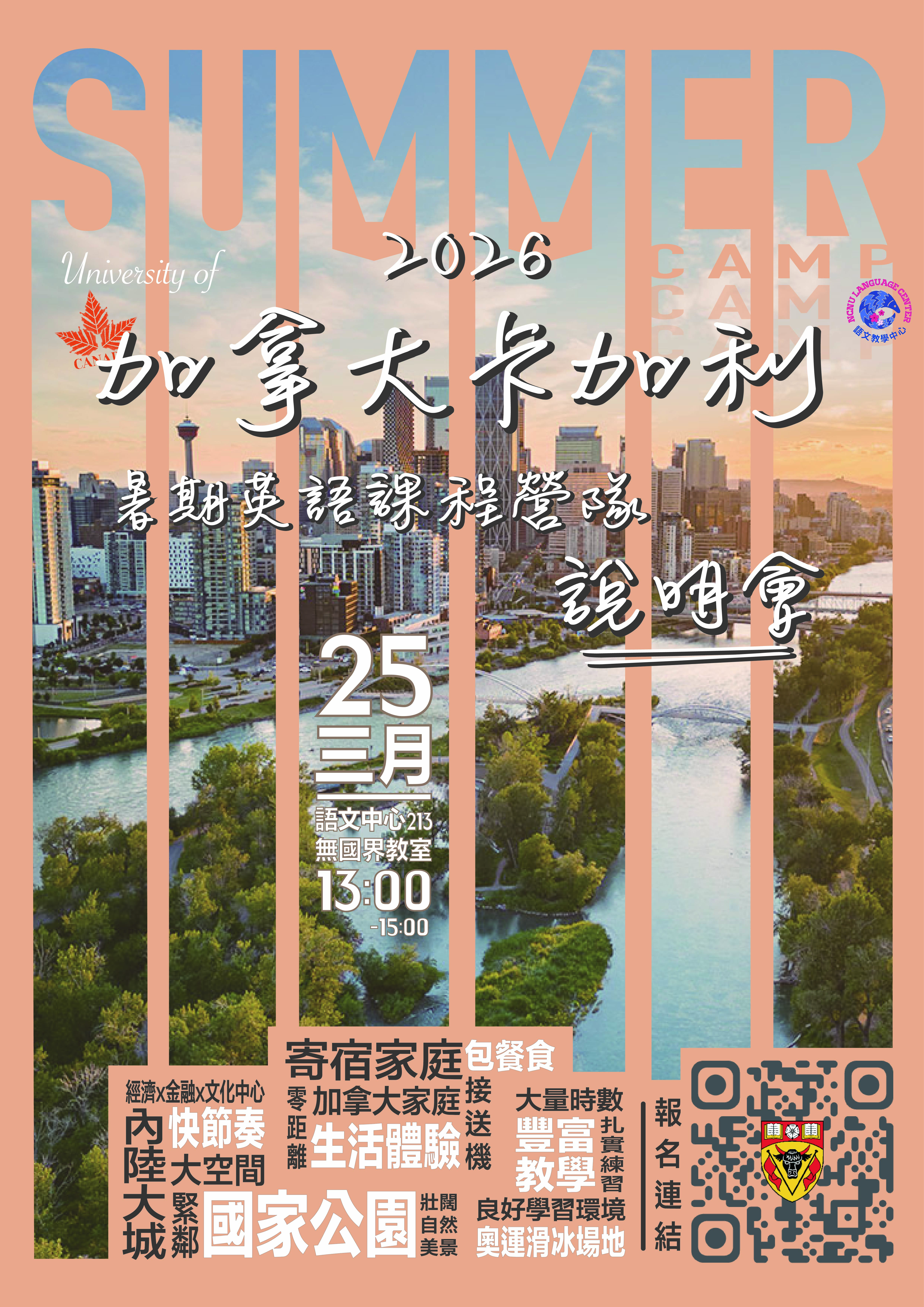 【營隊資訊】2026 加拿大卡加利大學 (UCalgary) 暑期英語營隊說明會