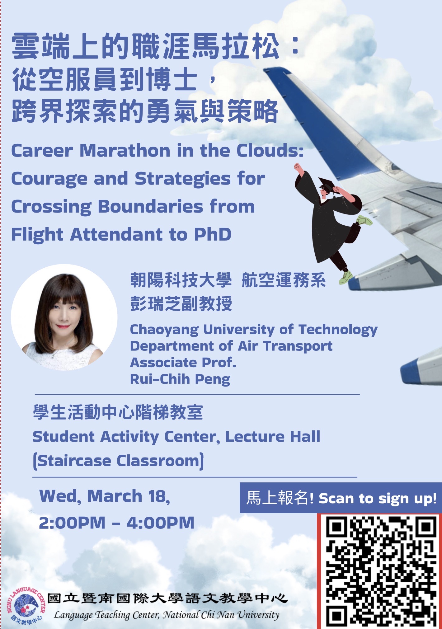 【1142講座】雲端上的職涯馬拉松:從空服員到博士,跨界探索的勇氣與策略