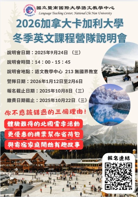 2026加拿大卡加利大學 冬季英文課程營隊說明會