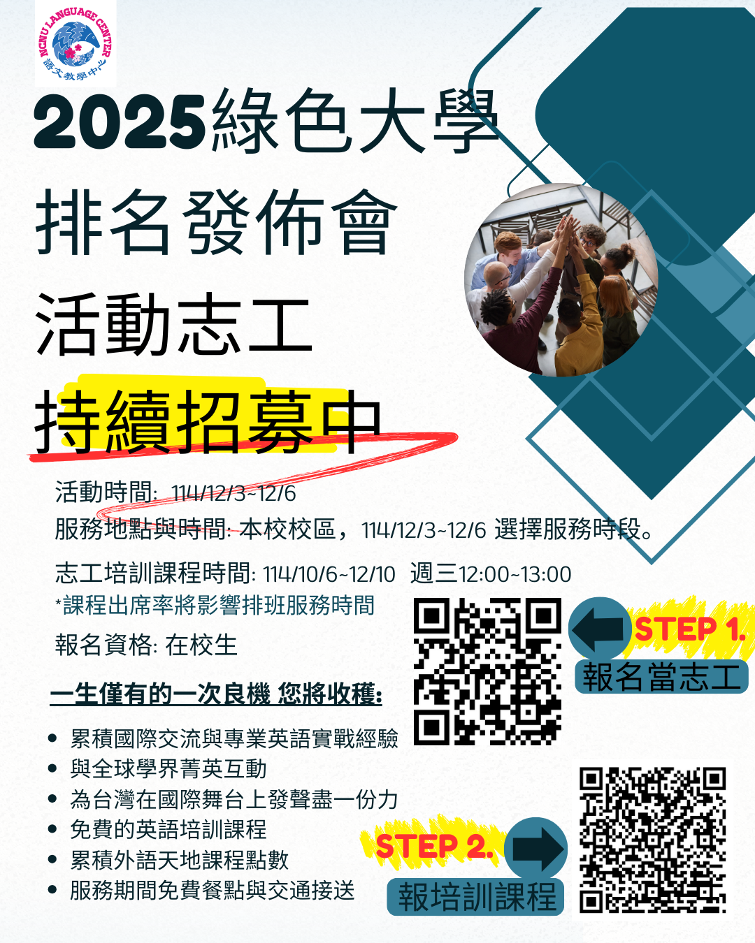 【課程公告】2025「UI GreenMetric World University Rankings」志工培訓課程通知