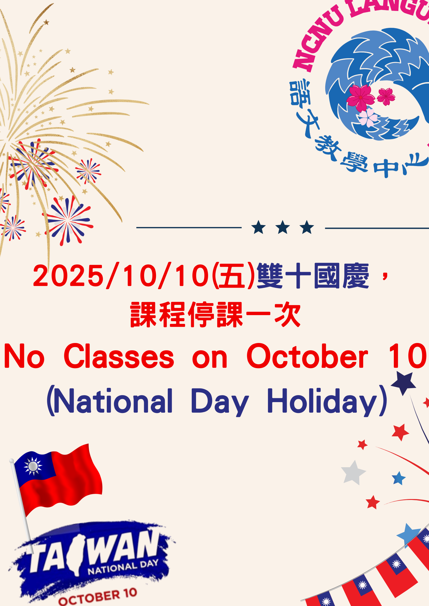 因 10 月 10 日(星期五)適逢國慶日國定假日,課程將於當日