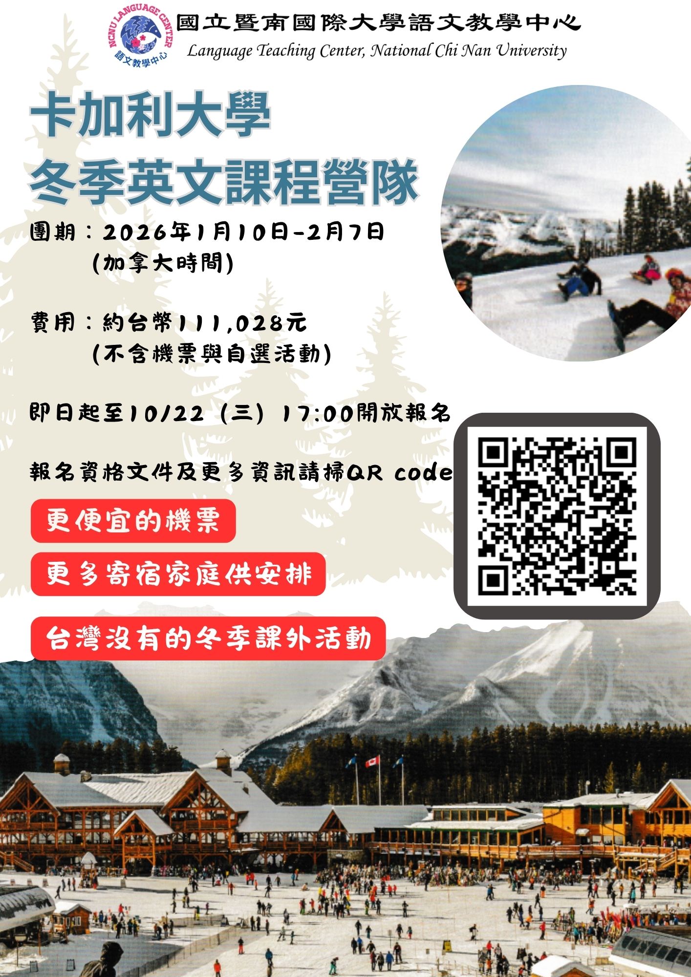 【演講活動】2026年加拿大卡加利大學冬季英文課程營隊報名期限延長