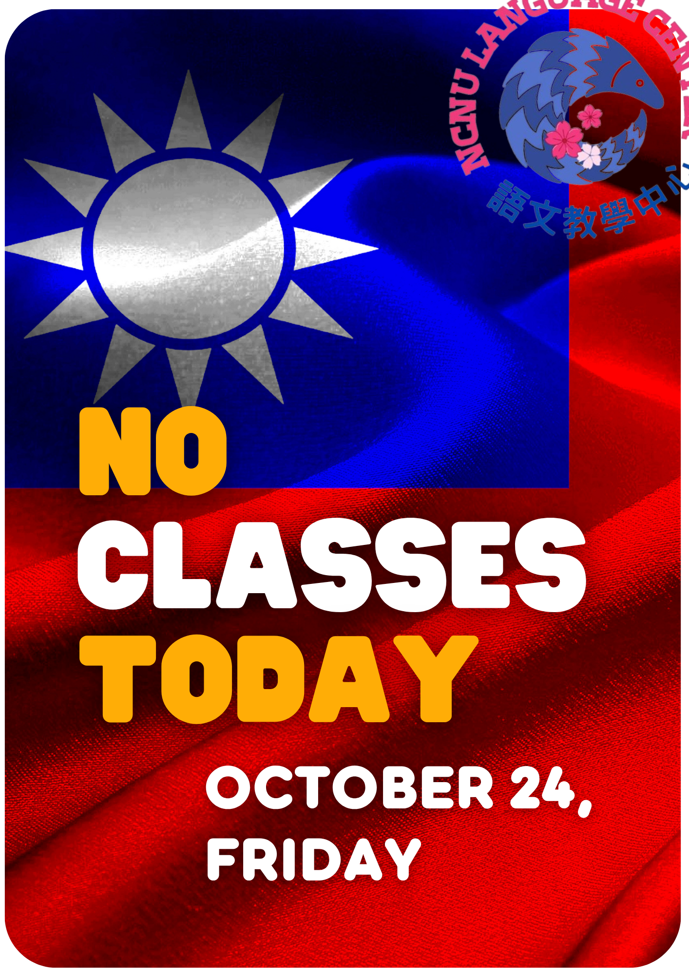 因 10 月 24 日(星期五)適逢臺灣光復節例假日補假,當日外語天地課程(含密集班)停課一次。