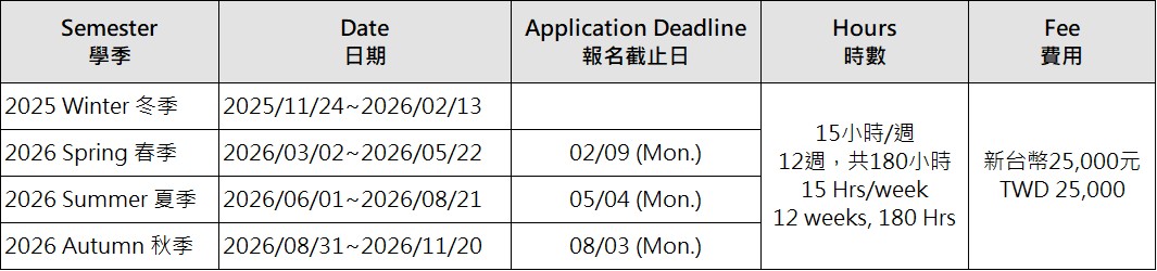 2025–2026 課程時程表