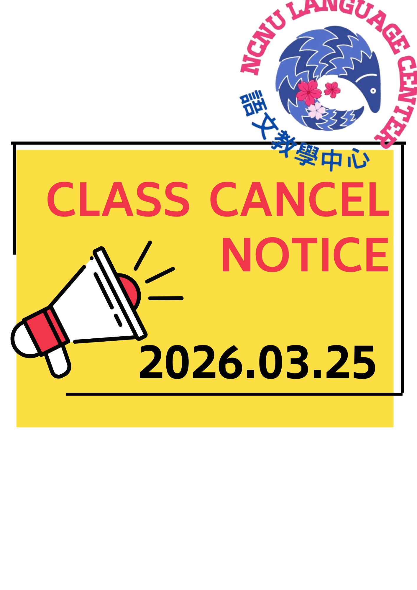 【課程公告】2026/03/25 外語天地課程停課通知: 國際特派教師真人實境英語課:英語角、世界心